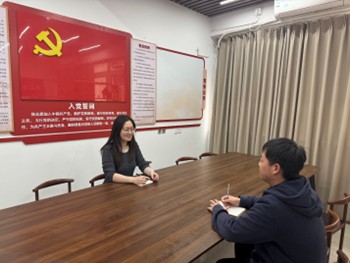 学生党支部二支部宣传委员唐夏与学生党员谈心谈话