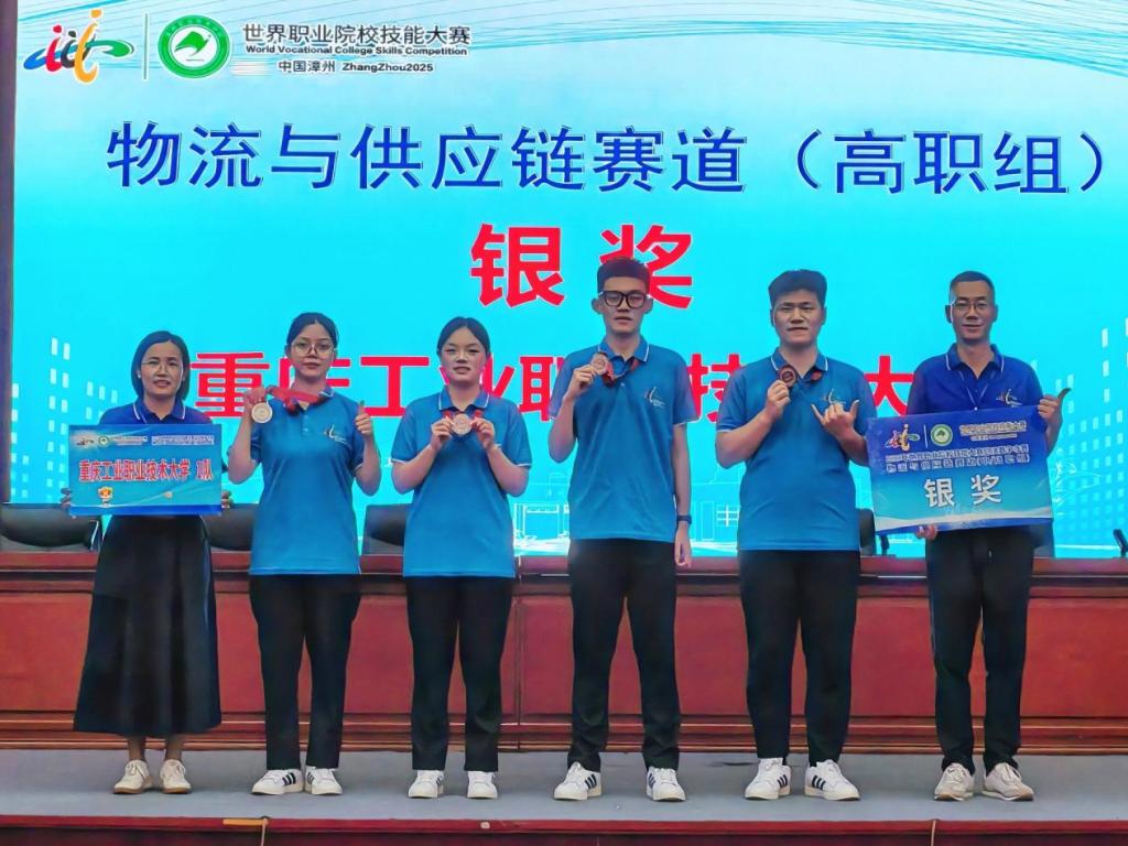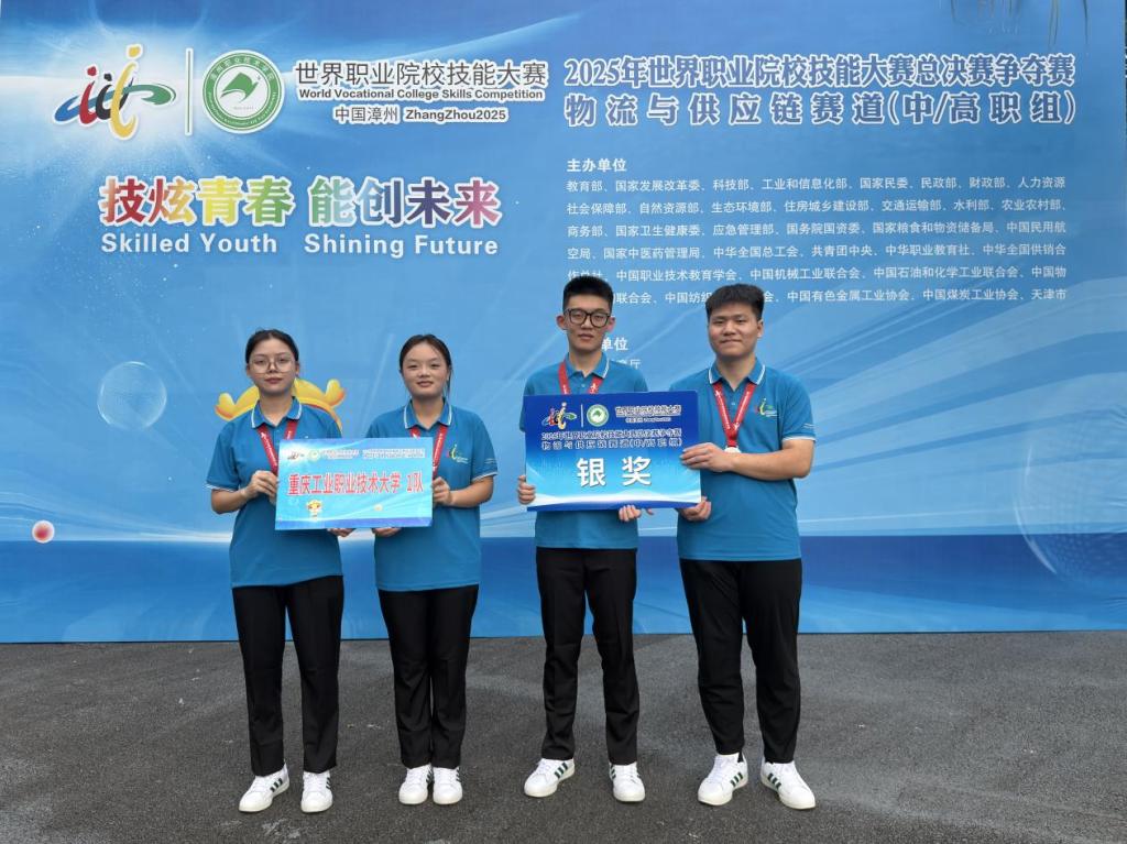 在8月26日-31日举行的2025年世界职业院校技能大赛总决赛争夺赛物流与供应链赛道(高职组)中,经济与管理学院现代物流管理专业学生杨隃贤、钟欢、程俊杰、刘菲在指导老师蒙玉琴、宋玉阳、邓莉、郝天军及学院领导的带领下,凭借扎实的技术技能和稳定的现场发挥从全国131个参赛队伍中脱颖而出,荣获该赛项银奖。