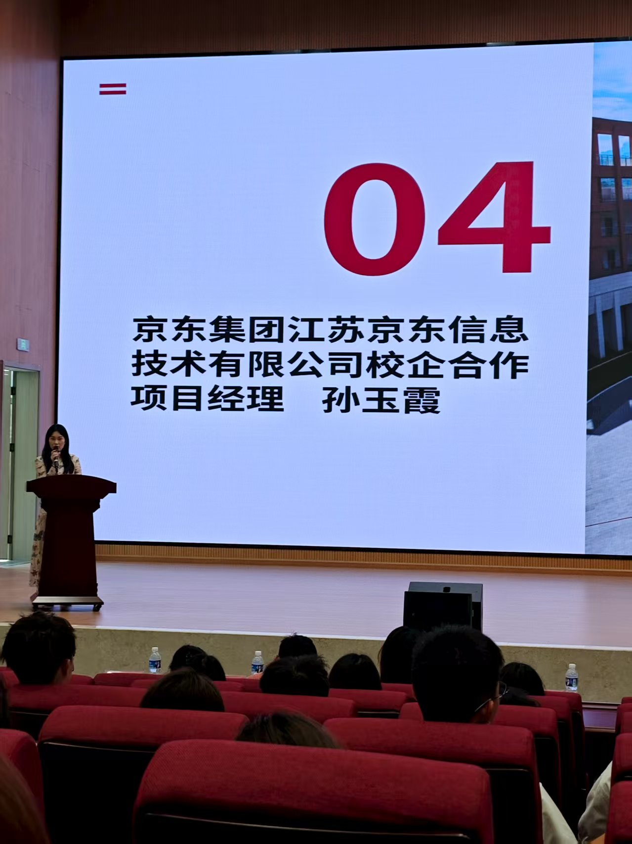 随后,校企合作单位代表——重庆丰必达网络科技有限公司、京东集团江苏京东信息技术有限公司、中企盈飞(北京)会计服务有限公司的负责人相继发言,介绍了行业发展前沿、企业用人需求以及未来将为同学们提供的企业导师指导、实习实践资源等支持,展现了学院深度产教融合的丰硕成果。