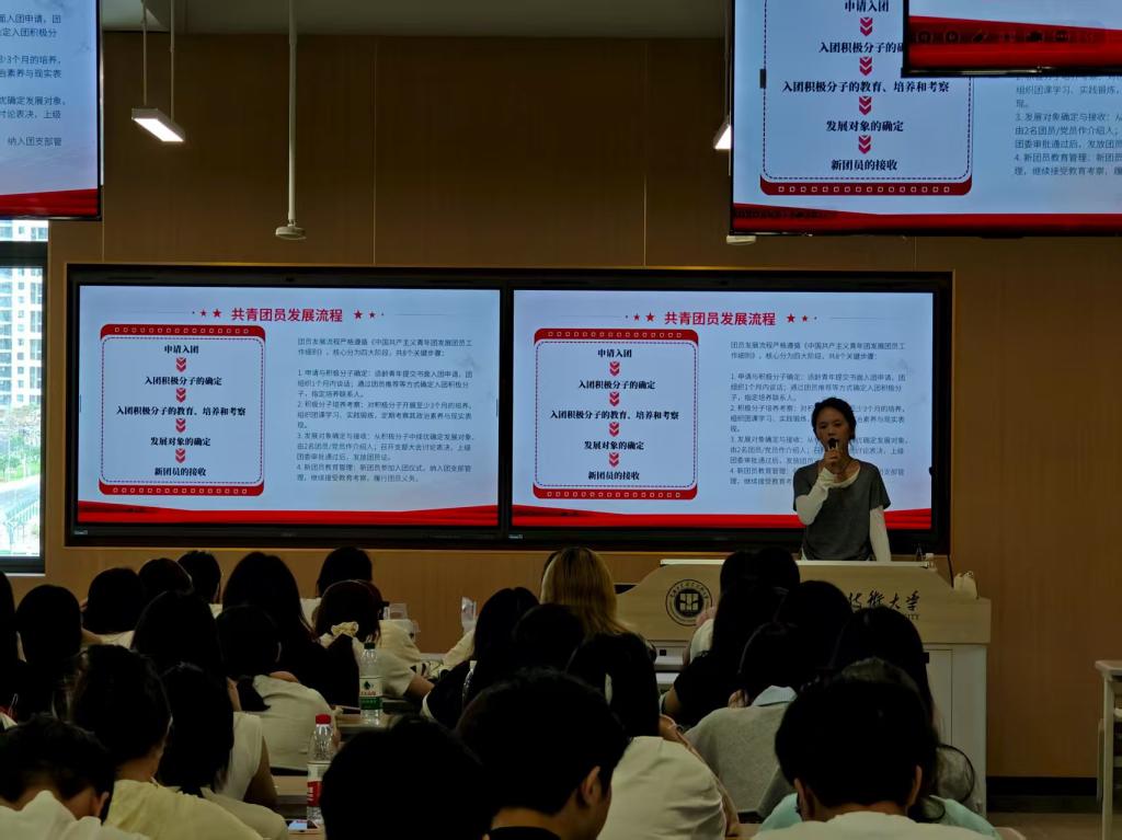 开展了入团教育,讲解了团员的权利义务,并进行了团员关系转接说明。学院学生会也进行了招新宣讲,介绍了学生会的部门职能和品牌活动,鼓励新生积极参与学生工作,锻炼能力,服务同学。