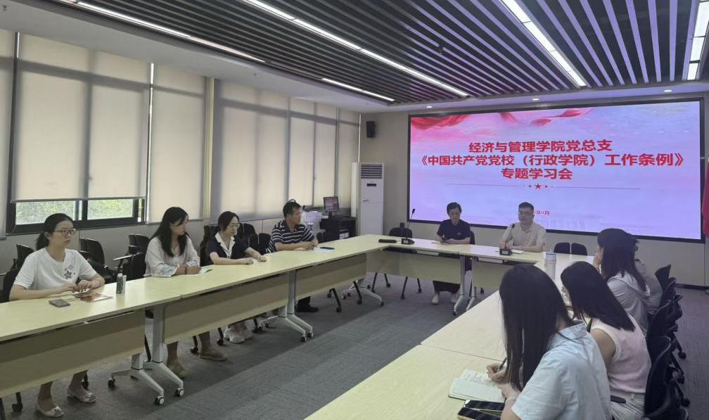 2025年9月17日下午经济与管理学院党总支在2教303办公室开展《中国共产党党校(行政学院)工作条例》专题学习会,党总支委员和各支部书记及委员参加学习会,会议由组织员主持。