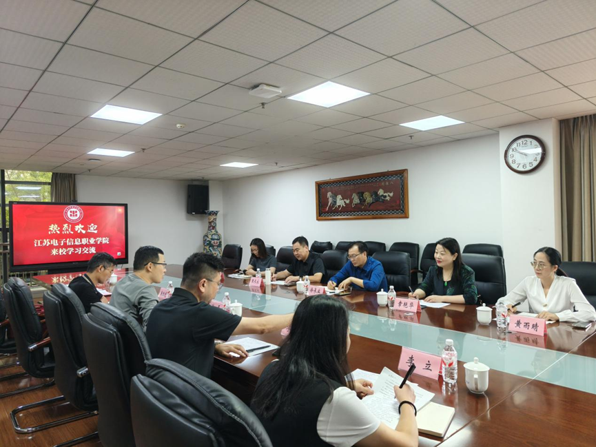 徐承业一行人前往学校校史馆以及新零售人才孵化基地进行了参观。座谈会上,许磊对学校在人才培养、社会服务、科研项目等领域的情况进行了介绍。徐承业对学校的热情接待表达了谢意,并介绍了江苏电子信息职业学院的办学状况。双方就党建、科研工作等内容展开了深入研讨。