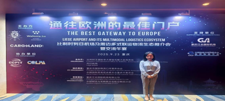2025 年 9 月 23 日上午,由比利时王国驻华大使馆瓦隆大区商务处主办的 “通往欧洲的最佳门户 —— 比利时列日机场及周边多式联运物流生态推介会” 在重庆万豪酒店隆重举行。比利时瓦隆大区外贸与外国投资总署、中国贸促会重庆市委员会等政企学多方代表齐聚一堂,共话中欧物流合作新机遇。我校经济与管理学院关务与外贸服务专业负责人张晓妮老师受邀出席此次国际交流盛会。