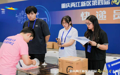 9 月 26 日,由重庆两江新区管委会主办、重庆工业职业技术大学经管学院承办的第四届两江匠才大赛快递员赛项决赛在重庆国际博览中心顺利举行。本届大赛以 “匠心筑梦,技耀两江”为核心主题,快递员赛项更是依托重庆工业职业技术大学现代物流管理市级“双高”专业群的建设优势,以“金渝琳物流服务师市级技能大师工作室”为技术支撑,聚焦两江新区快递行业高技能人才培养,助力重庆现代服务业提质升级。