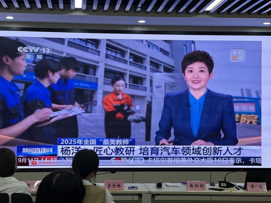 此外,活动还设置榜样学习与经验分享环节。教职工共同观看 2025 全国最美教师杨洋的央视报道,学习其扎根一线、潜心育人的先进事迹;杨晓凤、黄丹两位老师分别分享大数据与会计专业中企盈飞供需对接就业实习项目的经验与第三届中华人民共和国职业技能大赛参赛心得,为同事们提供了可借鉴的工作方法。最后,大家观看《教育家精神》系列师德师风教育视频,进一步强化“言为士则、行为世范”的育人理念。
