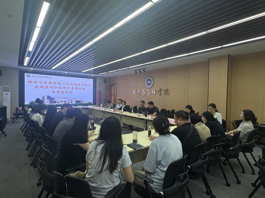 为庆祝第 41 个教师节,强化师德师风建设,9月26日,经济与管理学院开展庆祝教师节暨 “师德师风宣传月” 专项活动,全体教职工齐聚一堂,通过多环节活动凝聚发展共识、弘扬育人精神。