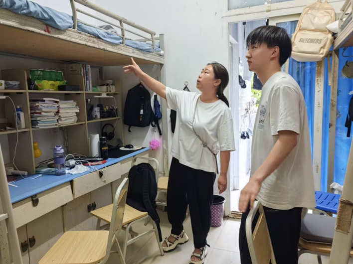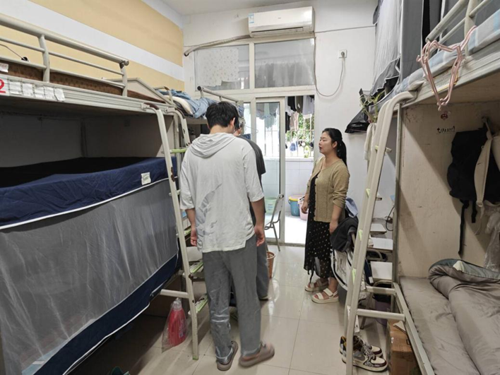 本次检查聚焦用电安全、消防安全、内务卫生及假期留校学生情况四大核心维度。检查过程中,麻红晓副书记与辅导员们深入每间寝室,与同学们亲切交流,细致排查是否存在使用违规电器、私拉乱接电线、人走未断电等安全隐患;同时认真查看宿舍卫生状况,叮嘱同学们勤打扫、多通风,共同维护整洁健康的居住环境。