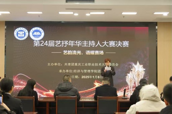 2026年1月6日,由共青团重庆工业职业技术大学委员会主办、经济与管理学院团总支承办的第二十四届“艺抒年华”主持人大赛决赛在南川校区第二报告厅精彩举行。大赛不仅是一场语言艺术的竞技盛宴,更集中展现了重工学子昂扬向上的青春风貌与综合素养。