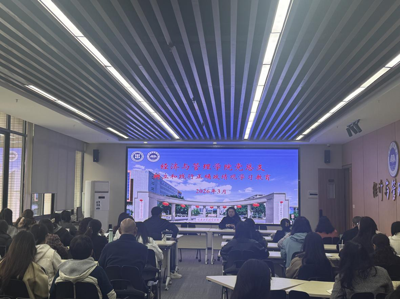 2026年3月27日,经济与管理学院党总支召开专题学习会,进一步深化树立和践行正确政绩观学习教育工作。学院党总支委员、各党支部书记、党支部委员及教师代表参加会议。